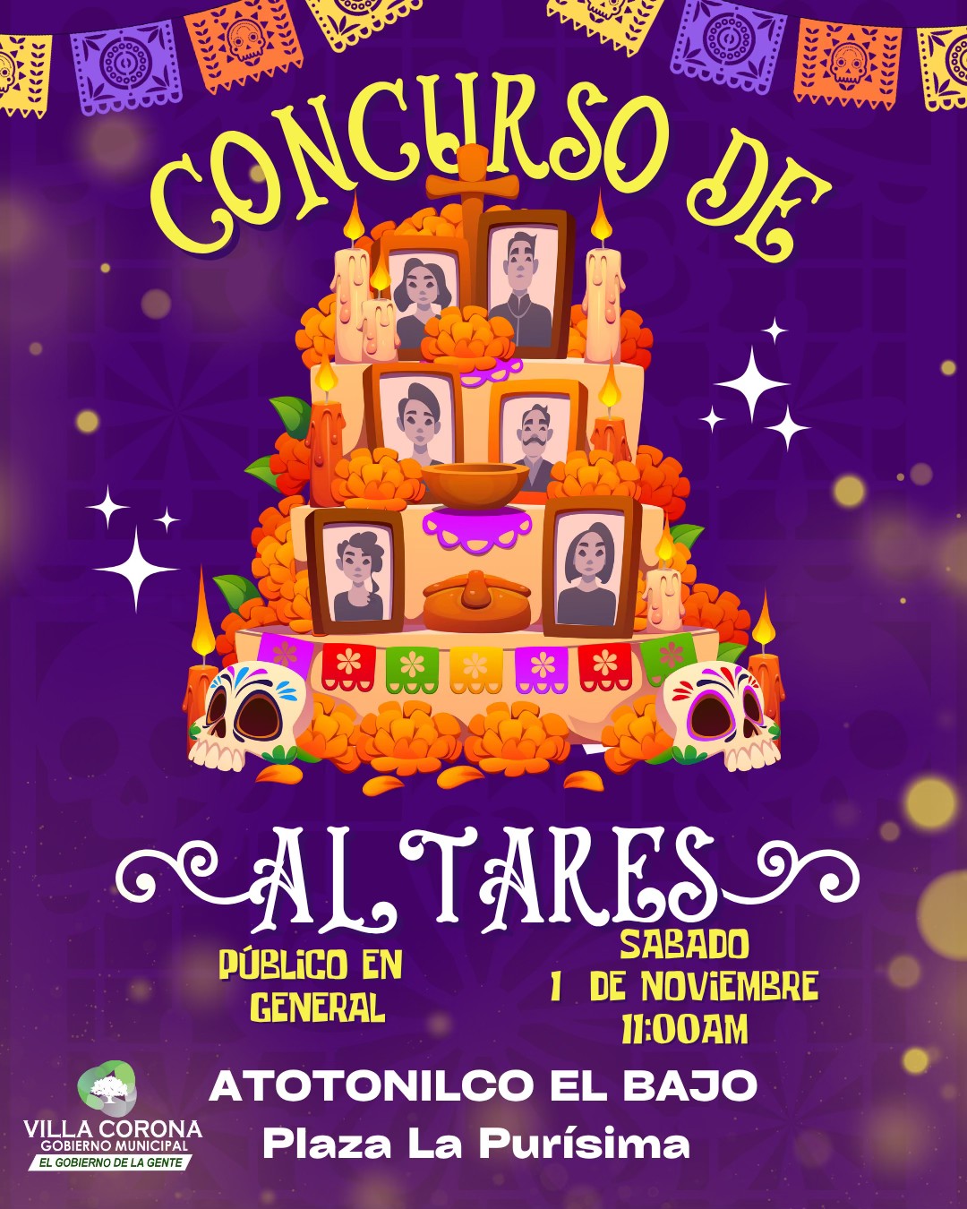 El Gobierno Municipal de Villa Corona, en conjunto con la Delegación de Atotonilco el Bajo, invita al público en general a participar en nuestro Concurso de Altares de Muertos 🕯️✨