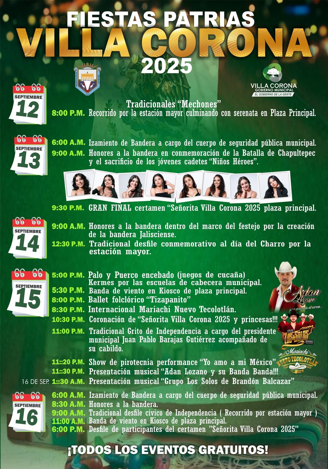 #ProgramaOficial #FiestasPatriasVillaCorona2025 #VillaCoronaCelebra #OrgulloPatrio #TradiciónYFiesta