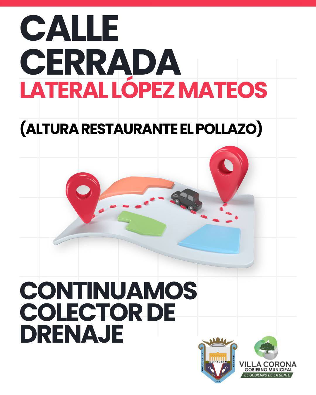 A la altura del restaurante El Pollazo seguimos avanzando con la construcción del colector de drenaje, una obra clave para fortalecer y modernizar nuestro sistema de aguas residuales en Villa Corona. 💧🏗️