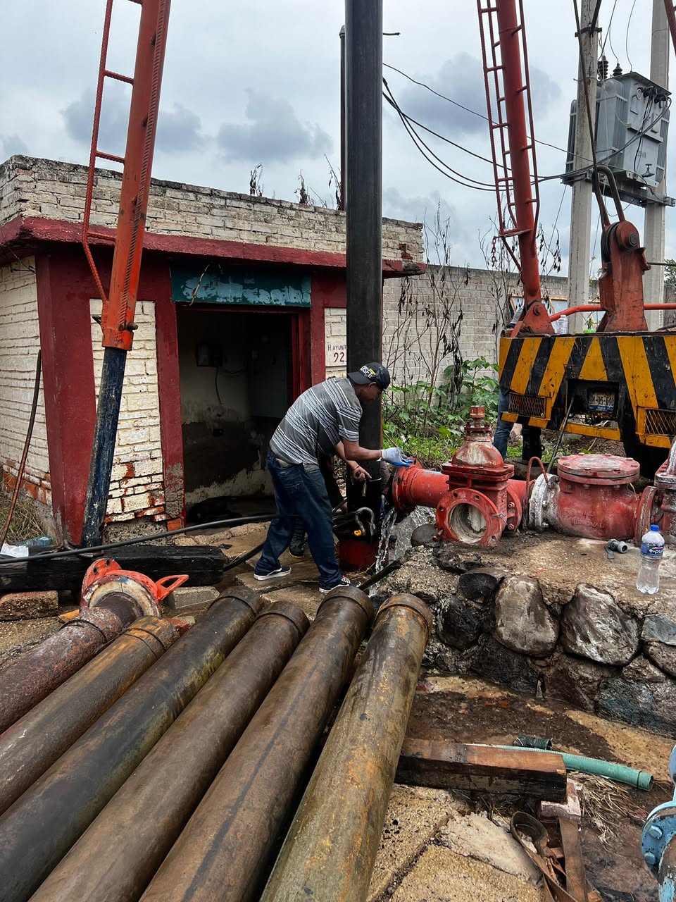La bomba de agua en la calle Colón está siendo sometida a un cambio total de bomba, tanto en su parte mecánica y en el control eléctrico, trabajando a marchas forzadas para garantizar un servicio de calidad a todos los ciudadanos.