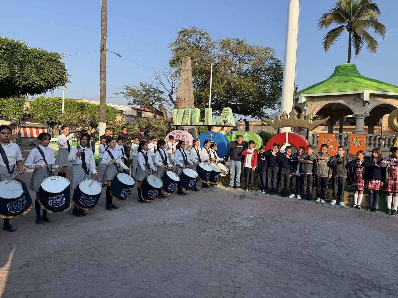 Agradecemos la destacada participación de la Banda de Guerra de la Escuela Primaria Benito Juárez, así como de las y los alumnos y personal docente de la Escuela Primaria Roberto Quiroz Guerra, quienes con su presencia fortalecieron este acto cívico.