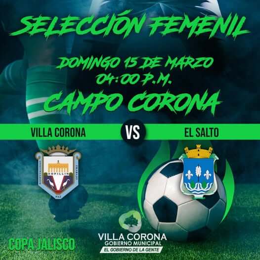 El Gobierno Municipal de Villa Corona 2024–2027 invita a la ciudadanía a asistir y apoyar a la Selección Femenil de Villa Corona, que disputará un importante encuentro dentro de la Copa Jalisco 2026 frente al equipo de El Salto.
