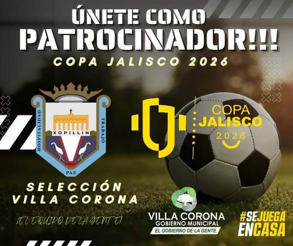 El Gobierno Municipal de Villa Corona, a través de la Dirección de Deportes, invita a empresas, comercios y personas interesadas a sumarse como patrocinadores de la Selección Villa Corona, de cara a la próxima edición de la Copa Jalisco.