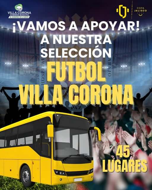 El Gobierno Municipal de Villa Corona 2024–2027 invita a la ciudadanía a sumarse y apoyar a la Selección Villa Corona en su participación dentro de la Copa Jalisco 2026, demostrando el orgullo, la pasión y el respaldo de nuestra comunidad.