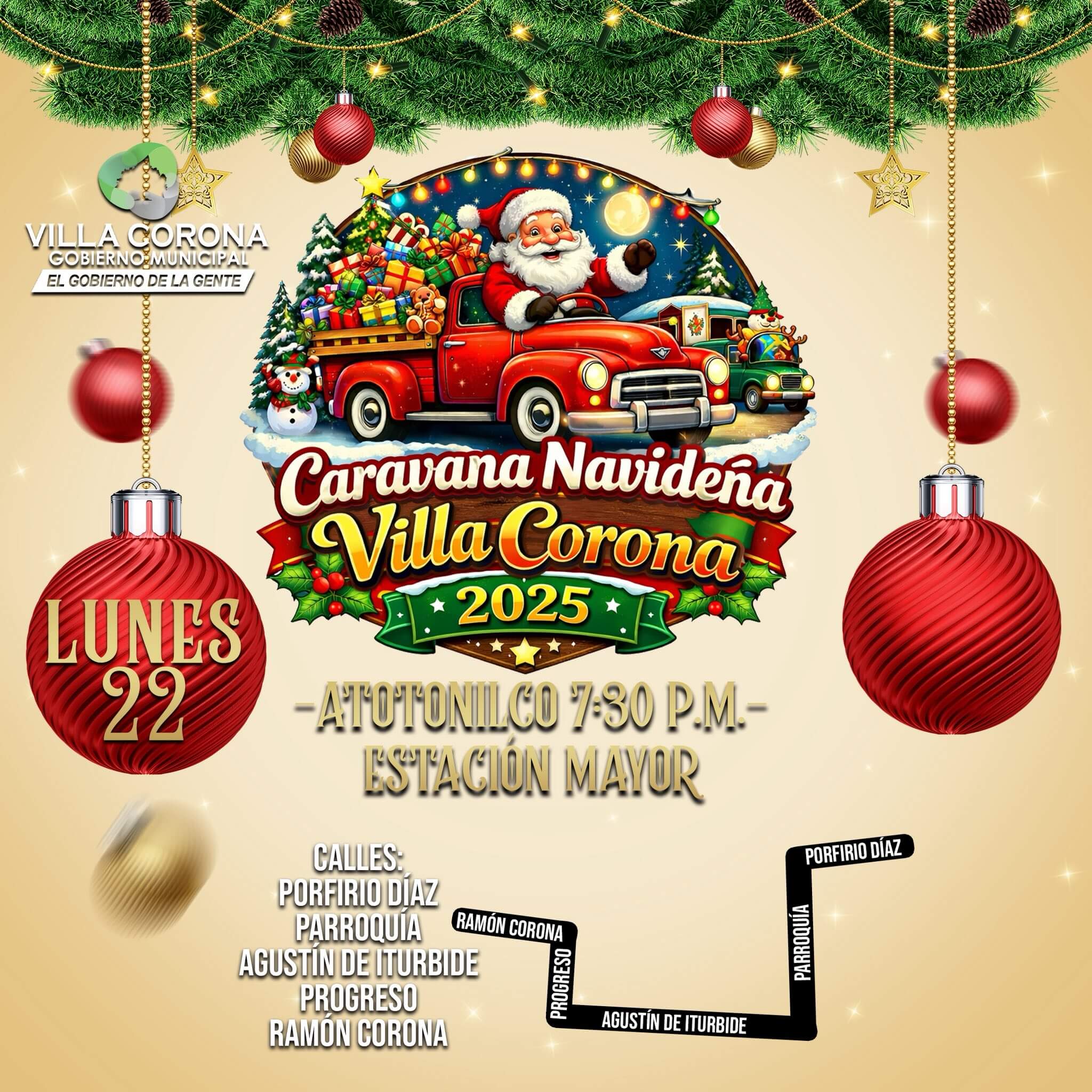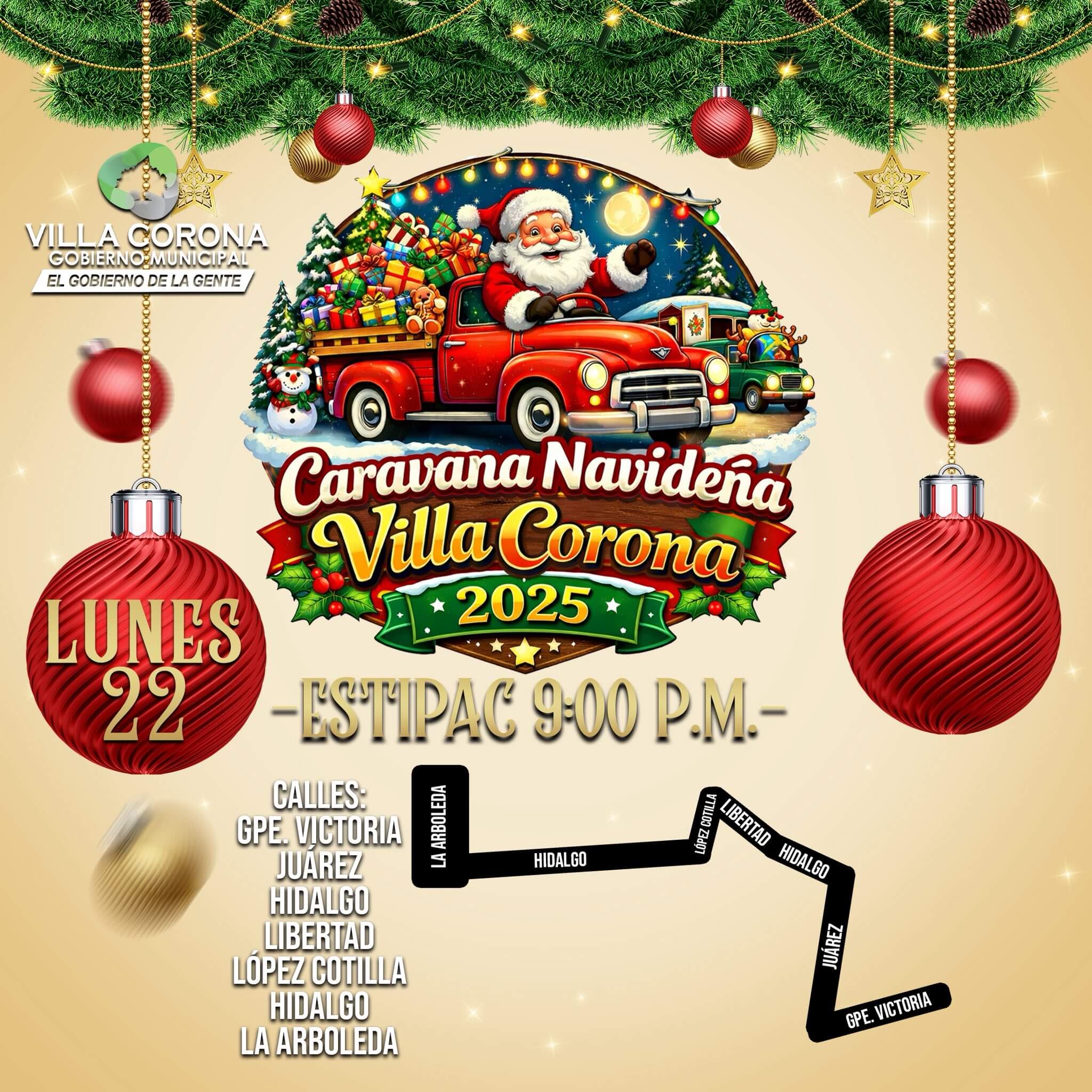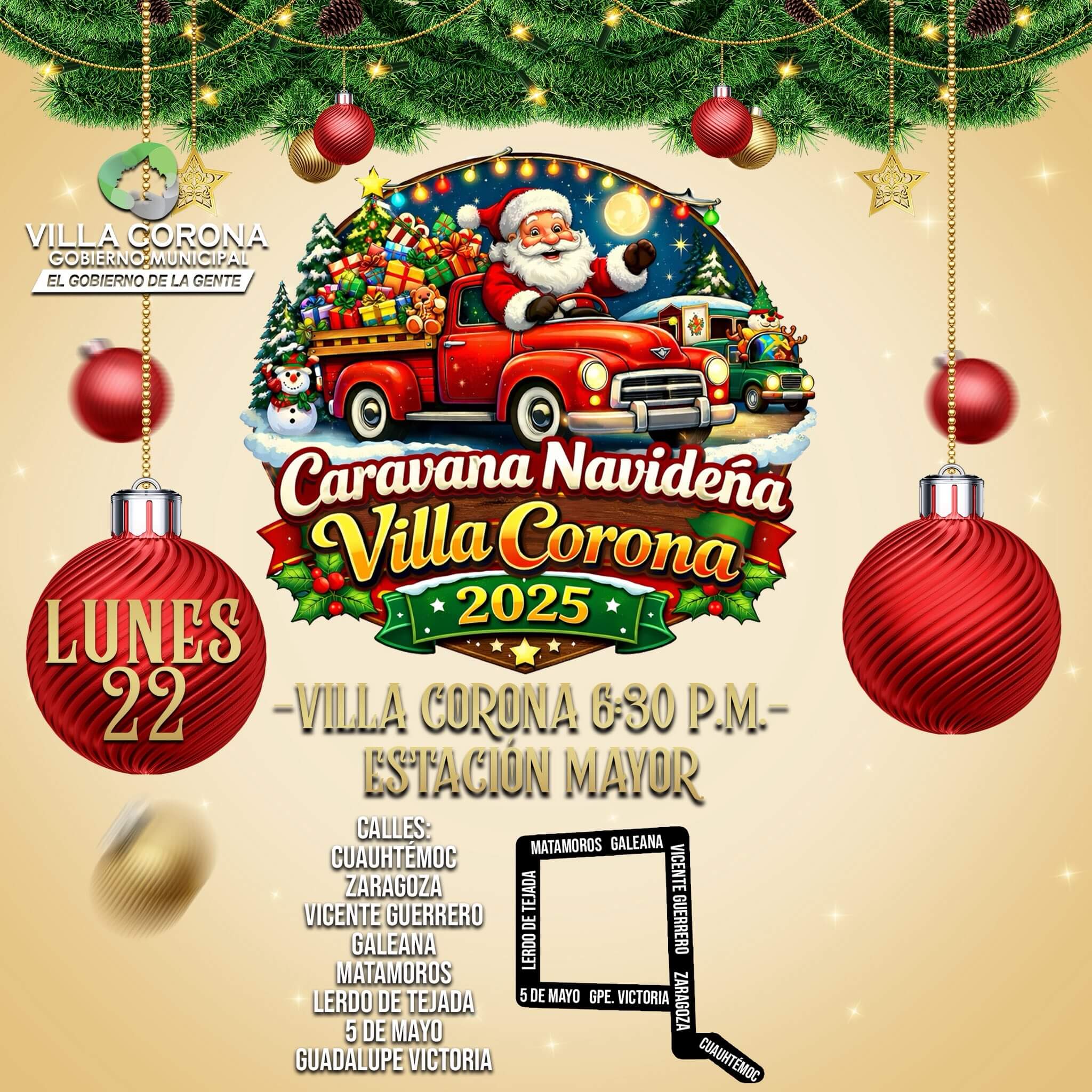 El Gobierno Municipal de Villa Corona 2024–2027 invita a la ciudadanía a disfrutar de la Gran Caravana Navideña 2025, un recorrido que llevará el espíritu de la temporada decembrina a distintas localidades del municipio.