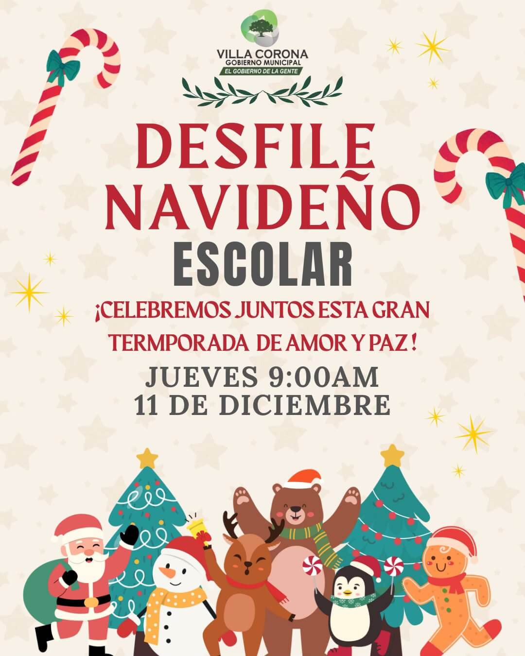 El Gobierno Municipal de Villa Corona 2024–2027 invita a toda la ciudadanía a participar en el Gran Desfile Navideño 2025, un evento diseñado para fortalecer la convivencia familiar y preservar las tradiciones que dan identidad a nuestro municipio.