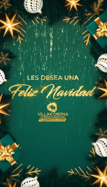 En esta temporada navideña, el Gobierno Municipal de Villa Corona 2024–2027, El Gobierno de la Gente, expresa sus mejores deseos a todas las familias del municipio.