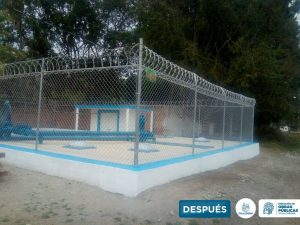 Por esa razón se demolió y reemplazó la loza de concreto, se habilitaron domos de iluminación para mantenimiento y se construyó plataforma de concreto en el fondo para seguridad del personal en caso de reparación o mantenimiento, se reemplazó la cerca perimetral y el cuarto del clorador que también estaba a punto de colapsar, se reparó la instalación eléctrica e hidráulica donde había corrosión y se pintó y rehabilito toda la estructura. Brindando instalaciones dignas y salubres para la población.