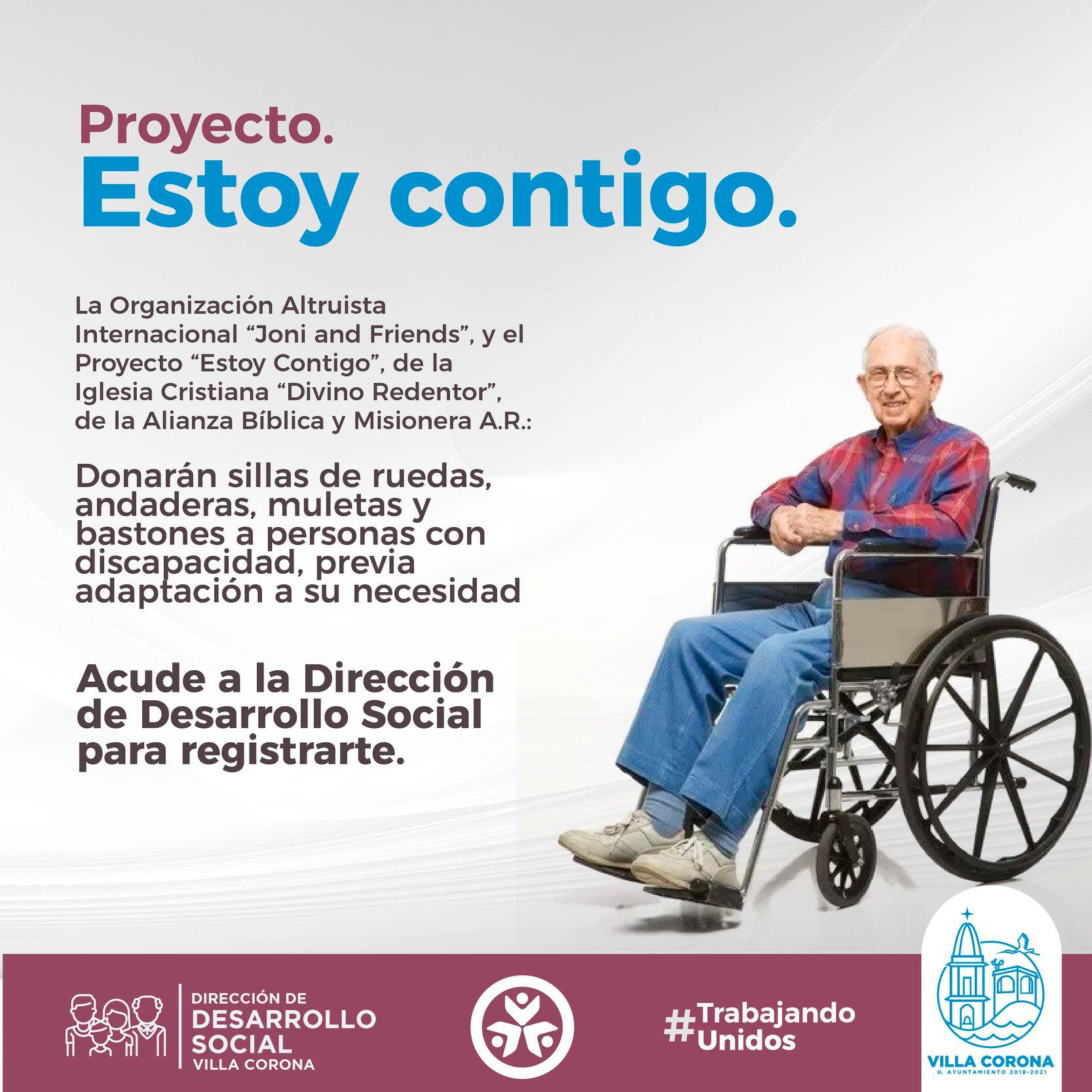 Donarán sillas de ruedas, andaderas, muletas y bastones a personas con discapacidad, previa adaptación a su necesidad.