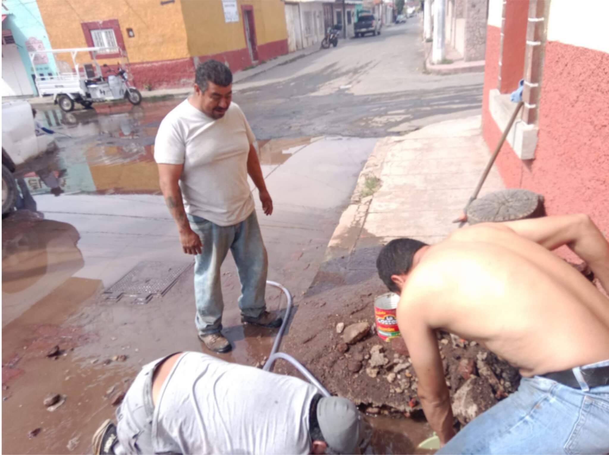 Reparan fuga de agua en cruce de Matamoros y Lerdo de Tejada en Villa Corona